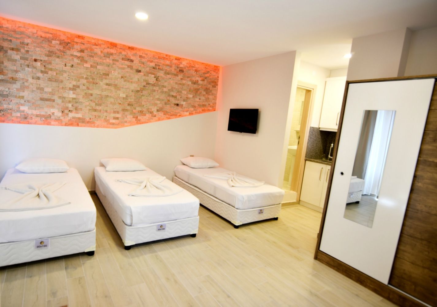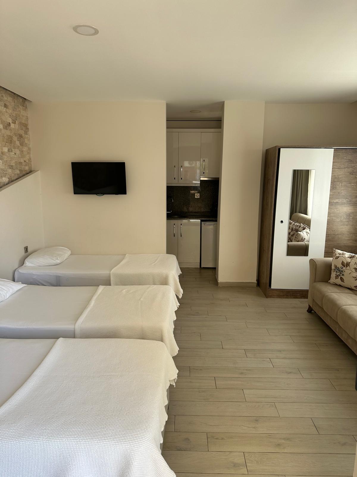 Our Garden Floor Apartments include an LCD television, kitchen (stovetop and kitchen utensils), wireless internet, wardrobe, bathroom, toilet, shower, towels, and a hair dryer.