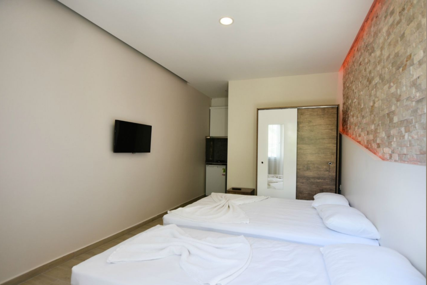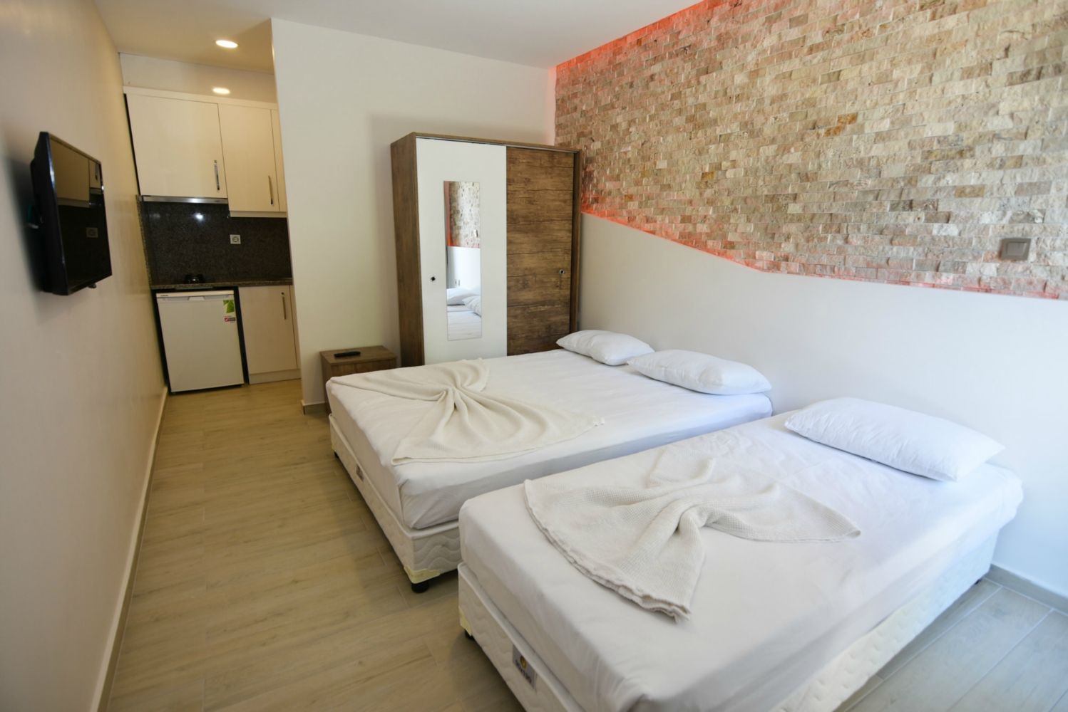 Our Garden Floor Apartments include an LCD television, kitchen (stovetop and kitchen utensils), wireless internet, wardrobe, bathroom, toilet, shower, towels, and a hair dryer.